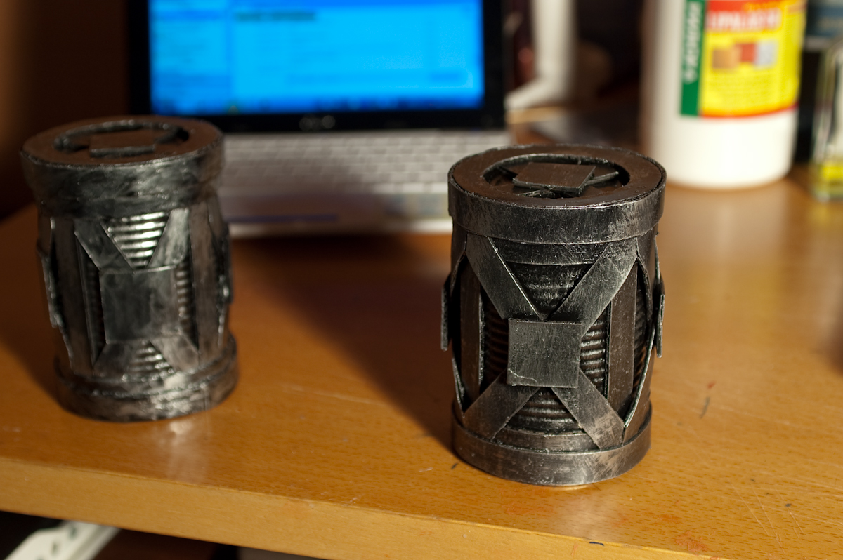 Elementarus, per valandą padaromas dalykas. Reikia tik skardinės, popieriaus, PVE klijų (lipalo), juodų dažų ir šiek tiek sausam dažymui kokio nors metalinio ar pilko atspalvio dažiuko.